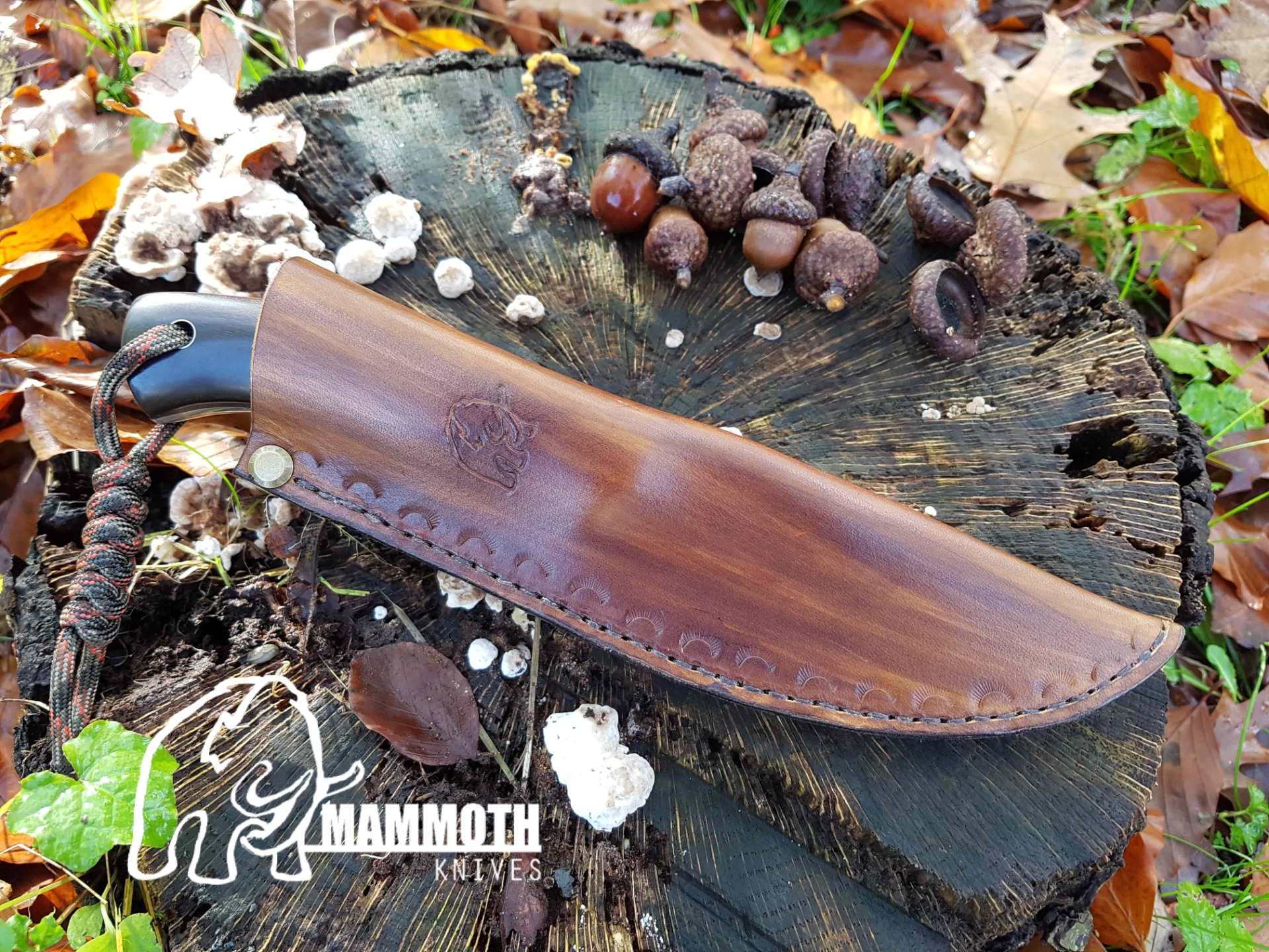 Highlander klinge lavet af Alex Elward i A2 rustfast stål. Garneret med et Pau Ferro skæfte, eller brasiliansk jerntræ om man vil, dertil okseovertræk.